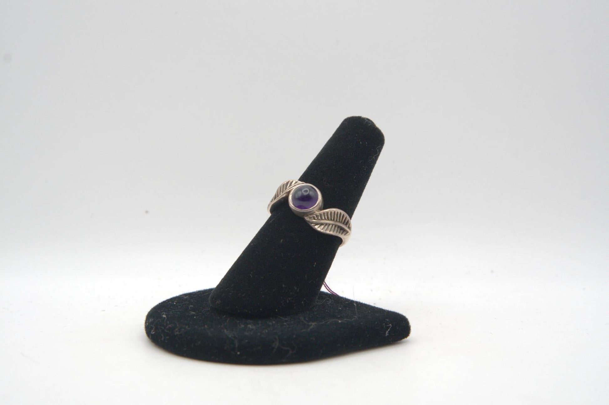 Amethyst Cabochon Bezel Leaves Silver Ring