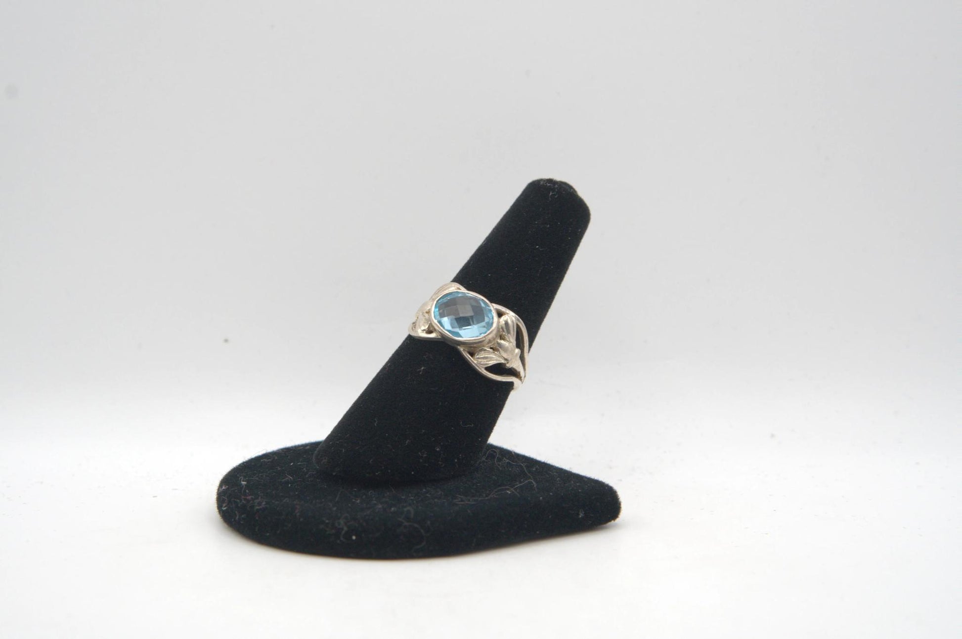 Aquamarine Latice Faceted Oval Cut Silver Ring