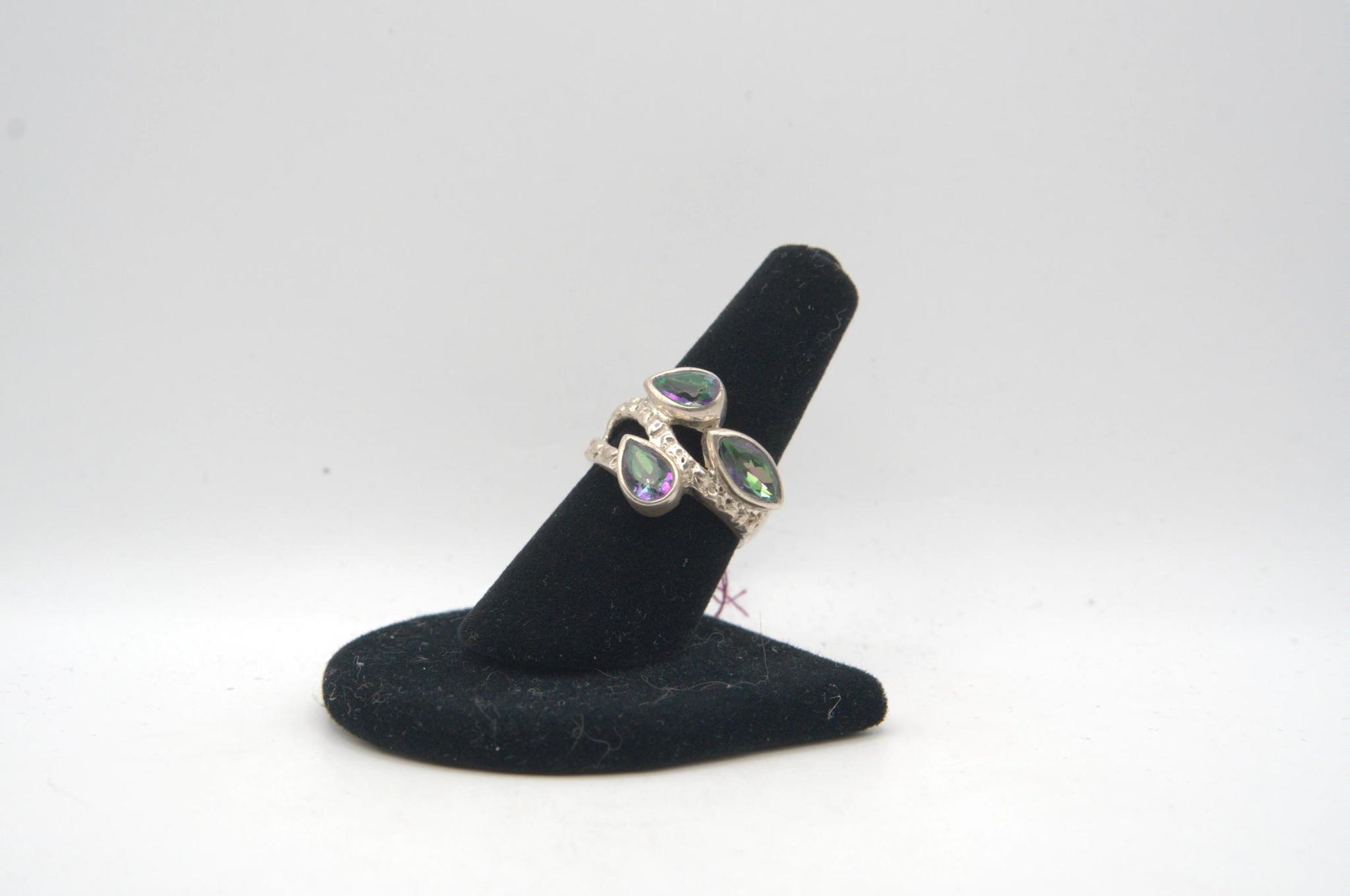 Assorted Cut Tri Stone Bezel Silver Ring