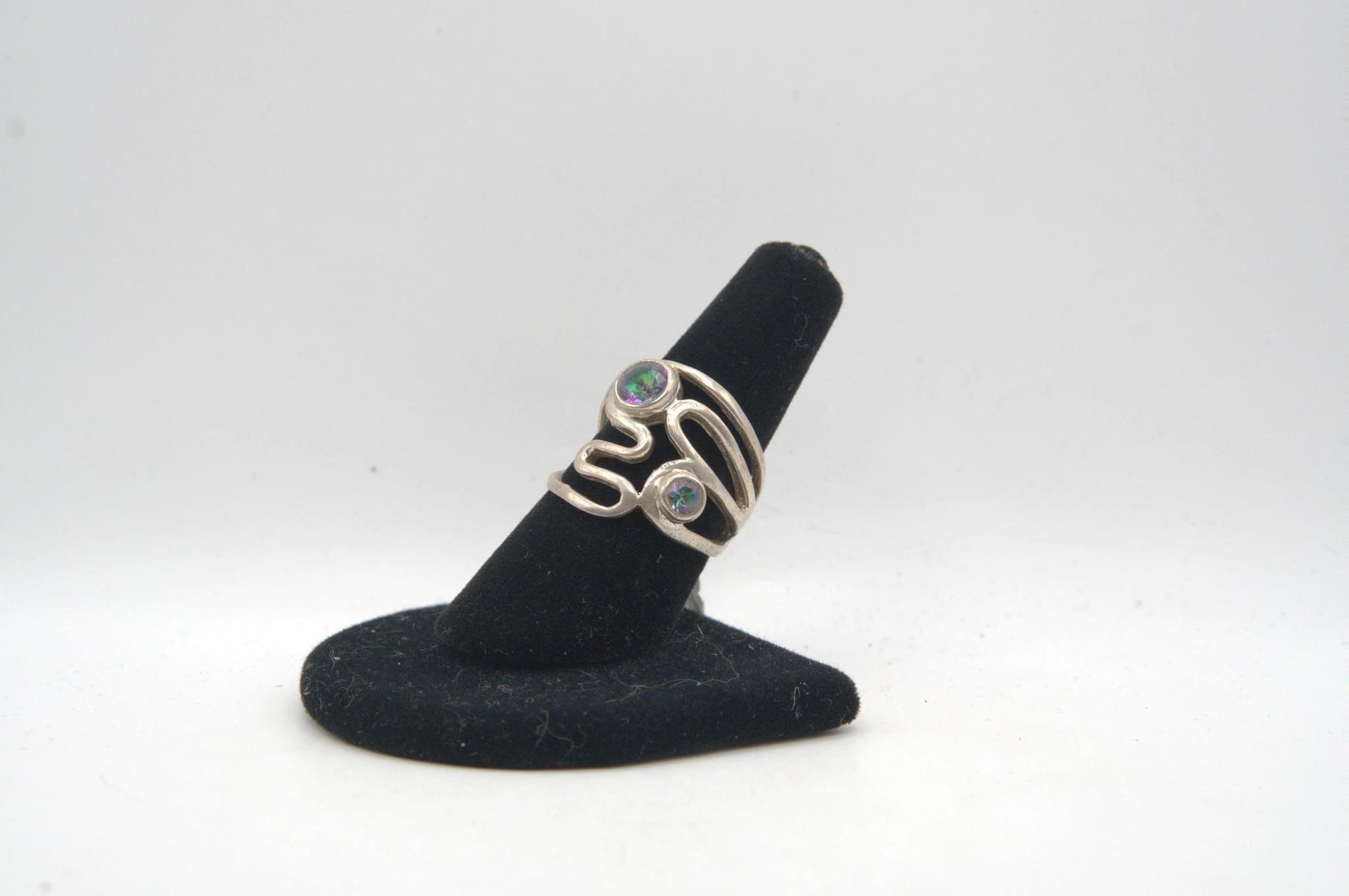 Mystic Topaz Duo Circle Cut Bezel Silver Ring