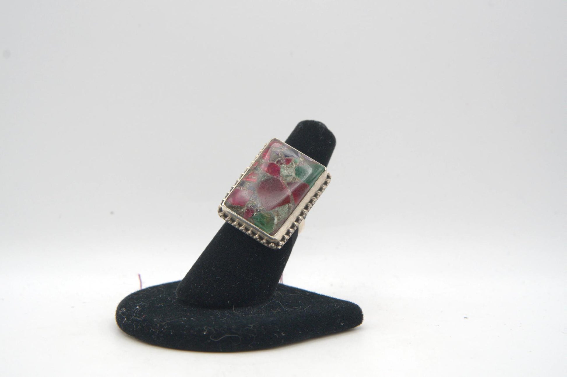 Ruby, Emerald & Amethyst Square Bezel Silver Ring